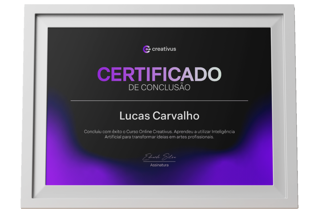 Após concluir 80% do treinamento, você receberá um Certificado de Especialista em criação de Anúncios com IA. O Certificado é gerado automaticamente com seu nome após finalizar 80% do treinamento!